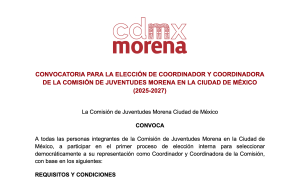 CONVOCATORIA PARA LA ELECCIÓN DE COORDINADOR Y COORDINADORA DE LA COMISIÓN DE JUVENTUDES MORENA EN...
